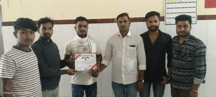लेकिन परिवारजन सुबह से ही परेशान थे परिवारजनों ने बहुत कोशिश की लेकिन उपलब्ध नहीं हो पा रहा था अलग अलग साथियों फोन मुझे आया जिसके बाद रक्तवीर साथियों का फोन काल आने के बाद सभी साथियो के सहयोग से रात्री में विधुत विभाग में कार्यरत मोंटी उर्फ मोनू ने ईमरजेंसी में अपना कार्य बिच में ही छोड़कर जिला अस्पताल पहुंचकर किया रक्तदान रक्तदान करने पर मोनू मीणा को प्रशस्ति पत्र प्रदान कर सम्मान दिया गया एवं रक्तवीर सेवा संस्थान श्योपुर टीम की ओर से बहुत बहुत धन्यवाद एवं आभार उपस्थित युवा समाजसेवी मुकेश हिरनीखेडा दीपक मीणा पट्टपडा पुरन जैदा विकास सोठवा गोलू सोठवा शिवराज अटेरिया आदि उपस्थित रहे
