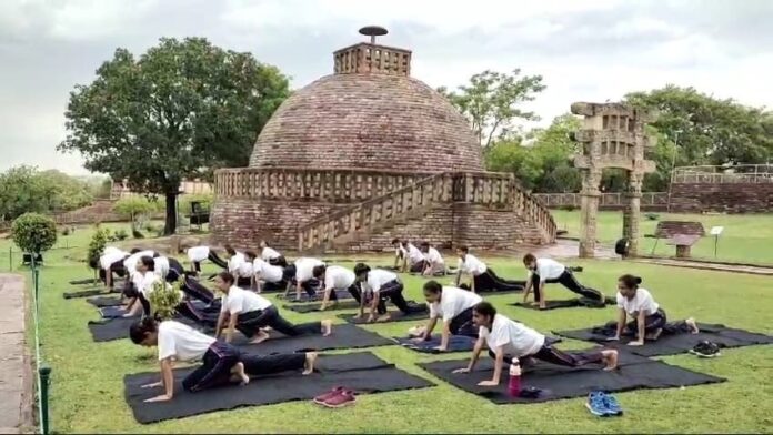 ‘पर्यटन से योग’ का संदेश देने के लिए मध्य प्रदेश के यूनेस्को विश्व धरोहर स्थल खजुराहो, भीमबेटका, सांची स्तूप सहित पचमढ़ी, मांडू, ग्वालियर, श्योपुर एवं अन्य पर्यटन स्थलों पर पर्यटन सखियों ने योग के विभिन्न आसान किए। अंतर्राष्ट्रीय योग दिवस के अवसर पर योग विशेषज्ञों के मार्गदर्शन में 5 हजार से अधिक पर्यटन सखियों ने प्रदेश के 50 पर्यटन स्थलों पर योग किया। साथ ही पर्यटन स्थलों का भ्रमण कर वैभवशाली इतिहास और समृद्ध संस्कृति के बारे में जाना।