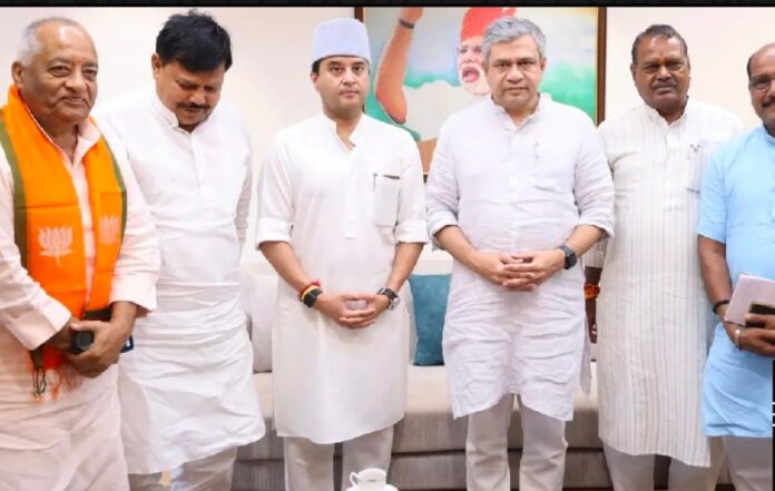 जानकारी के मुताबिक केंद्रीय मंत्री ज्योतिरादित्य सिंधिया सोमवार को रेल विभाग से संबंधित प्रोजेक्ट, लाइन विस्तार व ट्रेनों की संख्या बढ़ाने जैसे विषयों को लेकर रेल मंत्री अश्विनी वैष्णव से मुलाकात की। केंद्रीय मंत्री सिंधिया रेल मंत्री से मिलने रेल मंत्रालय के कार्यालय पहुंचे। सिंधिया ने झांसी-शिवपुरी, श्योपुर से लेकर सवाई माधोपुर पर नई रेल लाइन का निर्माण की मांग रखी है। ग्वालियर शिवपुरी- गुना अशोकनगर से कटरा तक नई ट्रेन संचालन की मांग रखी है। इसके साथ ही ग्वालियर-गुना इंटरसिटी रात में भी चलाने की मांग की है।