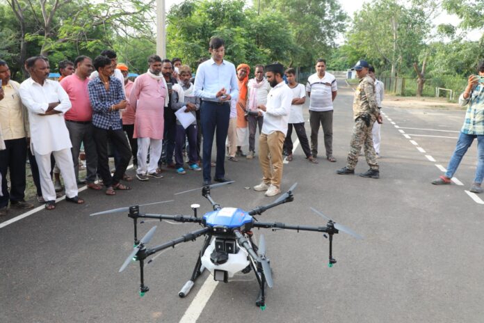 बैठक के उपरांत श्योपुर क्रॉप प्रोड्यूसर कंपनी के सीईओ सोनू शर्मा द्वारा ईफको के माध्यम से उपलब्ध कराये गये ड्रोन का प्रदर्शन भी किया गया। उन्होने बताया कि ड्रोन के माध्यम से इफको नैनो यूरिया एवं डीएपी का छिडकाव सुविधाजनक तरीके से किया जाता है। उन्होने बताया कि इसमें 10 लीटर का टैक लगा है, जिसमें नैनो यूरिया को पानी के साथ मिलाकर भरा जाता है और छिडकाव किया जाता है, इसके माध्यम से कीटनाशक का छिडकाव सुरक्षित और आसान है।