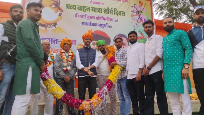 भारी संख्या में ट्रैक्टर मार्च के बीच मुख्य अतिथि राजस्थान जयपुर यूनिवर्सिटी के अध्यक्ष निर्मल चौधरी ने भी भाग लिया और उन्होंने कहा कि युवाओं को सूरजमल जी से प्रेरणा लेनी चाहिए महाराजा सूरजमल ने जिस तरह देश हित का कार्य किया है युवाओं को भी यह प्रण लेना चाहिए कि हम भी दूसरों की भलाई का कार्य करेंगे किसानों के मुद्दे पर बोलते हुए उन्होंने कहा कि सरकार निर्दयी हो गई है और किसानों पर अन्याय और अत्याचार कर रही है किसान देश का पेट पालता है उन्हीं के साथ अन्याय हो रहा है और हम सभी साथी किसान कोम के साथ है