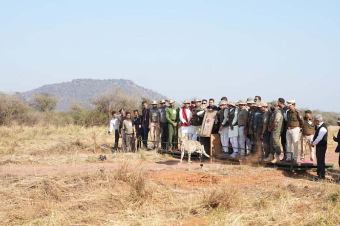 मुख्यमंत्री डॉ मोहन यादव ने आज श्योपुर जिलें में स्थित कूनो नेशनल पार्क के खुले जंगल में 5 चीतों को रिलीज किया गया। उन्होंने कूनो नेशनल पार्क के बड़े बाड़े में बंद चीतों में से 5 चीतों को जंगल में छोड़ा है। नेशनल पार्क के बड़े बाड़े में बंद मादा चीता आशा और उसके तीन नर शावकों को गेट नंबर 3 से तथा मादा चीता धीरा को गेट नंबर 5 से खुले जंगल में छोडा गया। इन 5 चीतों को छोड़े जाने के बाद अब खुले जंगल में चीतो की संख्या 7 हो गई है। इस अवसर पर उन्होंने कहा कि कूनो पालपुर के लिए आज का दिन बेहद खास है। प्रधानमंत्री नरेन्द्र मोदी ने दो चीतों को छोड़कर जिस अभियान की शुरुआत की थी उसी कड़ी में हमने इन पांच चीतों को अब जंगल में छोड़ा है जिनका दीदार पर्यटक कर सकेंगे। इसके अलावा चीता प्रोजेक्ट की समीक्षा भी की। उन्होंने कहा कि इसी प्रकार ये कूनो पालपुर उद्यान चीतों से आबाद रहे। चीतों की सुरक्षा समेत शासकीय स्तर पर हर तरह के प्रबंधन किये जा रहे हैं। पर्यटकों की सुविधा के लिए भी हम निरंतर प्रयासरत हैं। इसके बाद मुख्यमंत्री डॉ मोहन यादव ने वन विभाग के अधिकारियों के साथ कूनो पालपुर उद्यान का निरीक्षण भी किया।