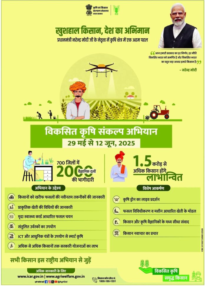 किसानों के लिए यह अभियान नई तकनीकों को अपनाने और उन्नत कृषि की दिशा में एक अहम कदम साबित होगा।