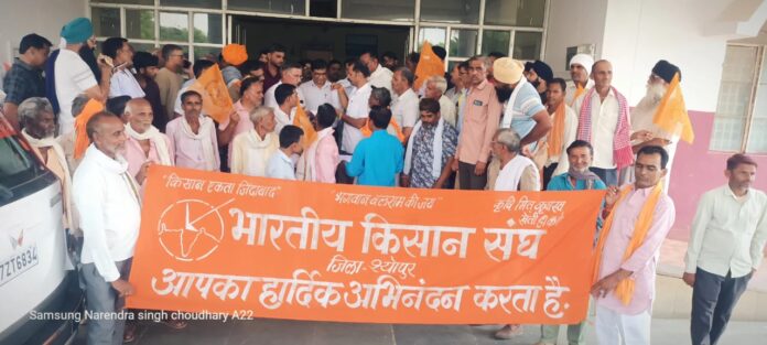 भारतीय किसान संघ द्वारा आज ज्ञापन दिवस के अवसर पर शहर में बाइक रैली निकालकर किसानों की विभिन्न समस्याओं को लेकर माननीय प्रधानमंत्री एवं माननीय मुख्यमंत्री के नाम कलेक्टर को ज्ञापन सौंपा गया। इसके साथ ही संघ के प्रतिनिधिमंडल ने विद्युत महाप्रबंधक से मिलकर बिजली आपूर्ति की समस्या पर चर्चा की तथा कार्यपालन यंत्री जल संसाधन विभाग से मुलाकात कर नहर की मरम्मत तत्काल कराने की मांग की।