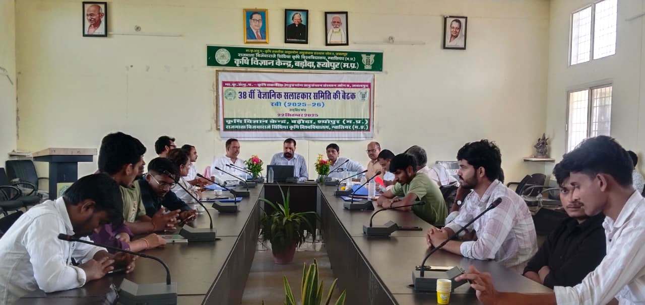 कृषि विज्ञान केन्द्र बड़ौदा, श्योपुर की 38वीं वैज्ञानिक सलाहकार समिति की बैठक का आयोजन हाइब्रिड मॉड में किया गया। बैठक की अध्यक्षता राजमाता विजयाराजे सिंधिया कृषि विश्वविद्यालय के कुलपति के प्रतिनिधि डॉ. वाय.पी. सिंह, निदेशक विस्तार सेवाएं ने की, जबकि डॉ. अखिलेश सिंह, वैज्ञानिक निदेशक विस्तार सेवाएं, ग्वालियर विशेष अतिथि रहे।