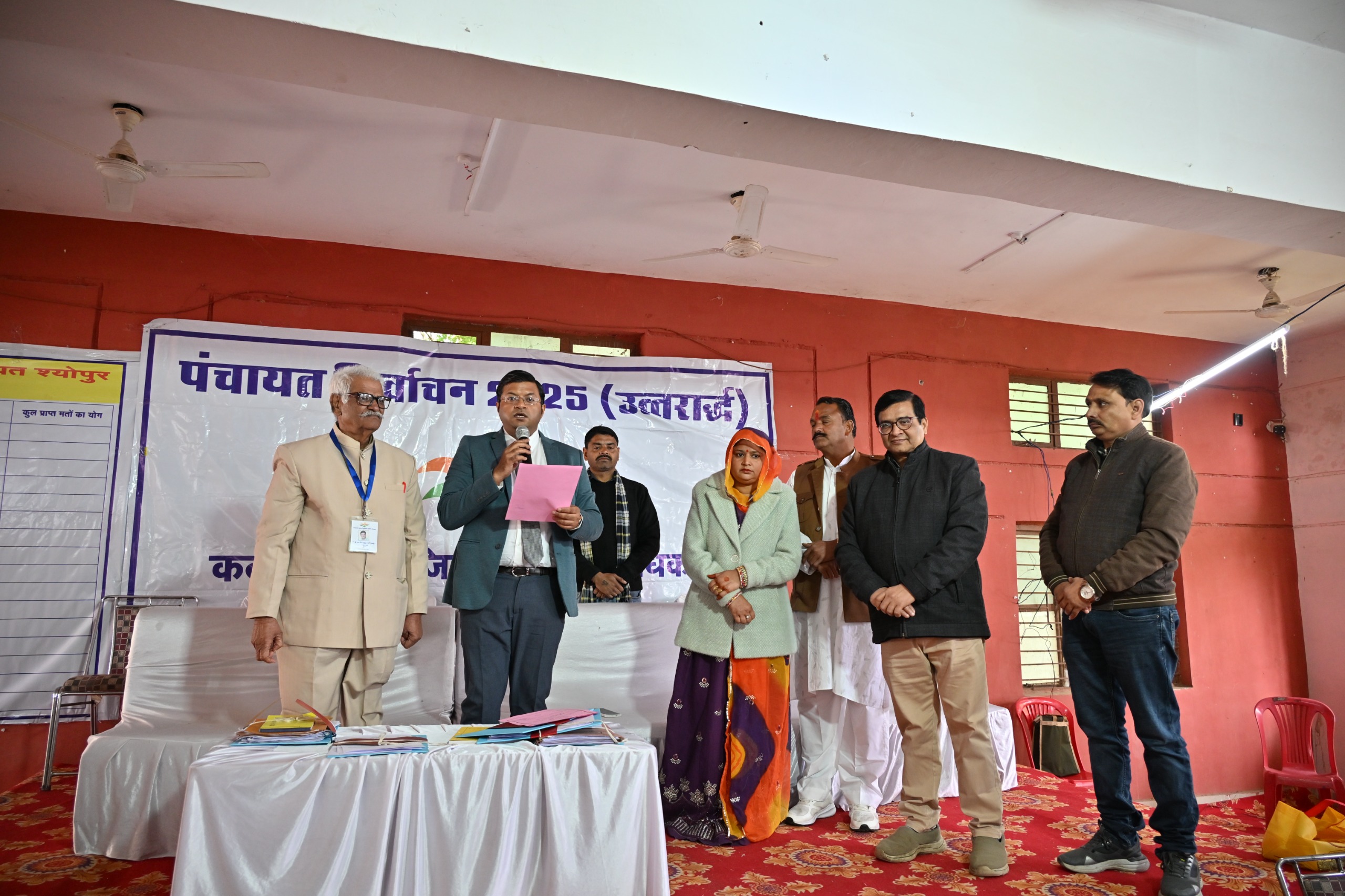 सारणीकरण की प्रक्रिया पूर्ण होने के उपरांत निर्वाचन परिणामों की अधिकृत घोषणा करते हुए श्रीमती कमलेश कंवर को विजयी घोषित किया गया। इस अवसर पर उप जिला निर्वाचन अधिकारी संजय जैन, सहायक कोषालय अधिकारी गिर्राज शर्मा, इलेक्शन सुपरवाइजर इमरान खान सहित अन्य अधिकारी उपस्थित रहे।